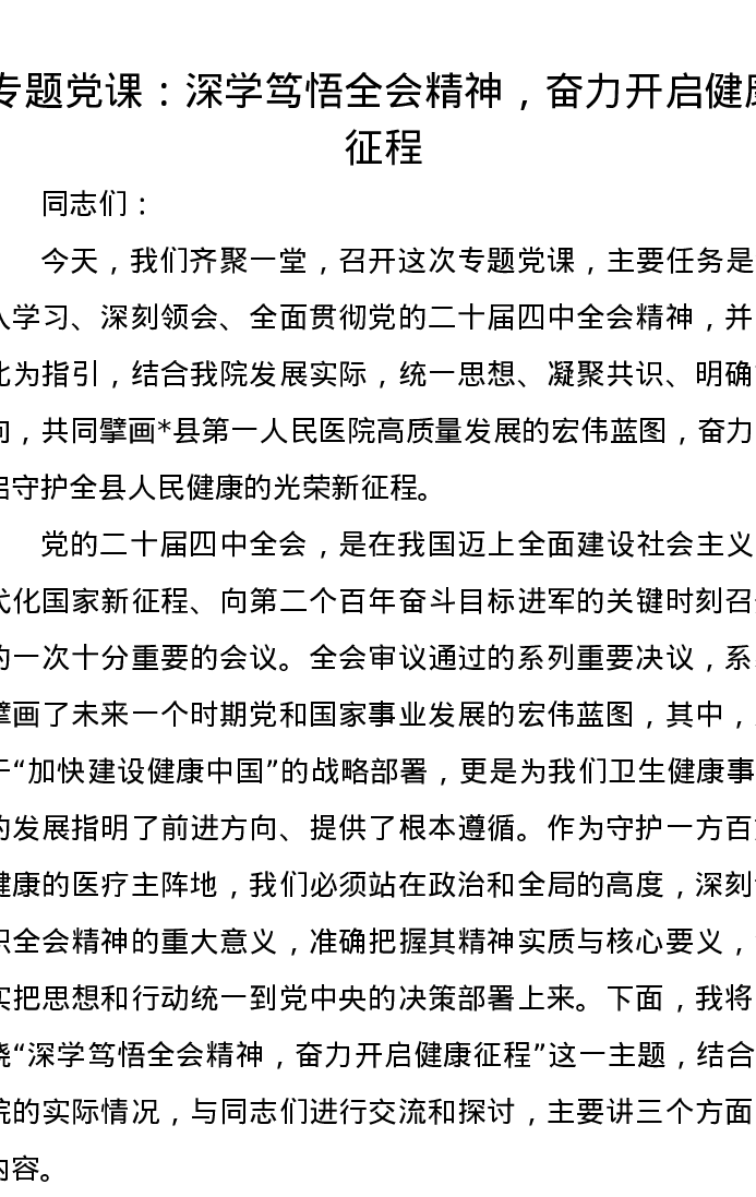 专题党课:深学笃悟全会精神,奋力开启健康征程