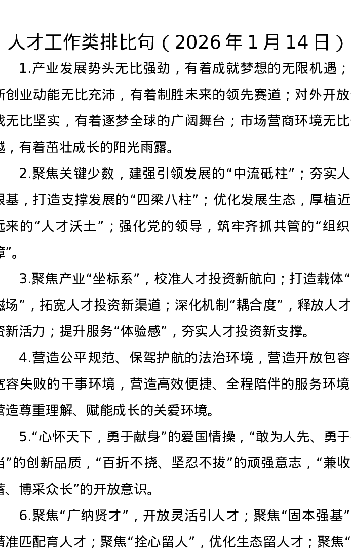 人才工作类排比句(2026年1月14日)