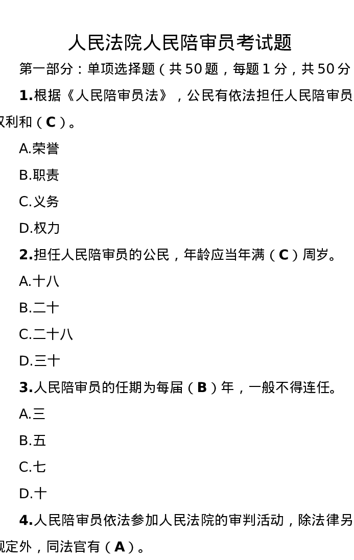 人民法院人民陪审员考试题