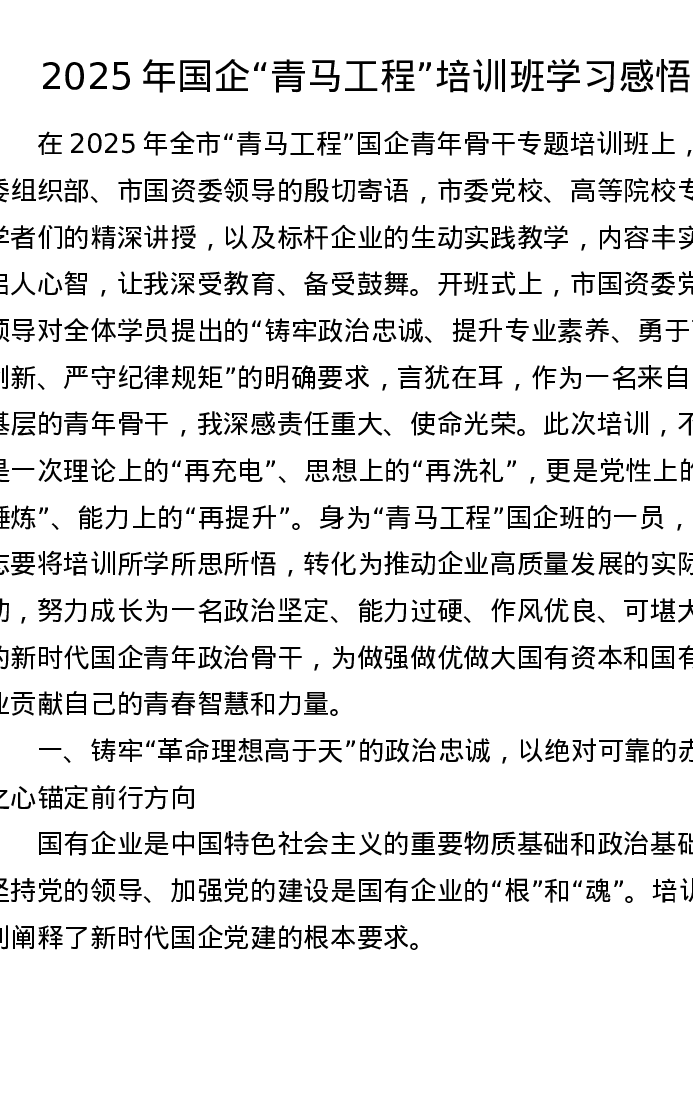 2025年国企青马工程培训班学习感悟