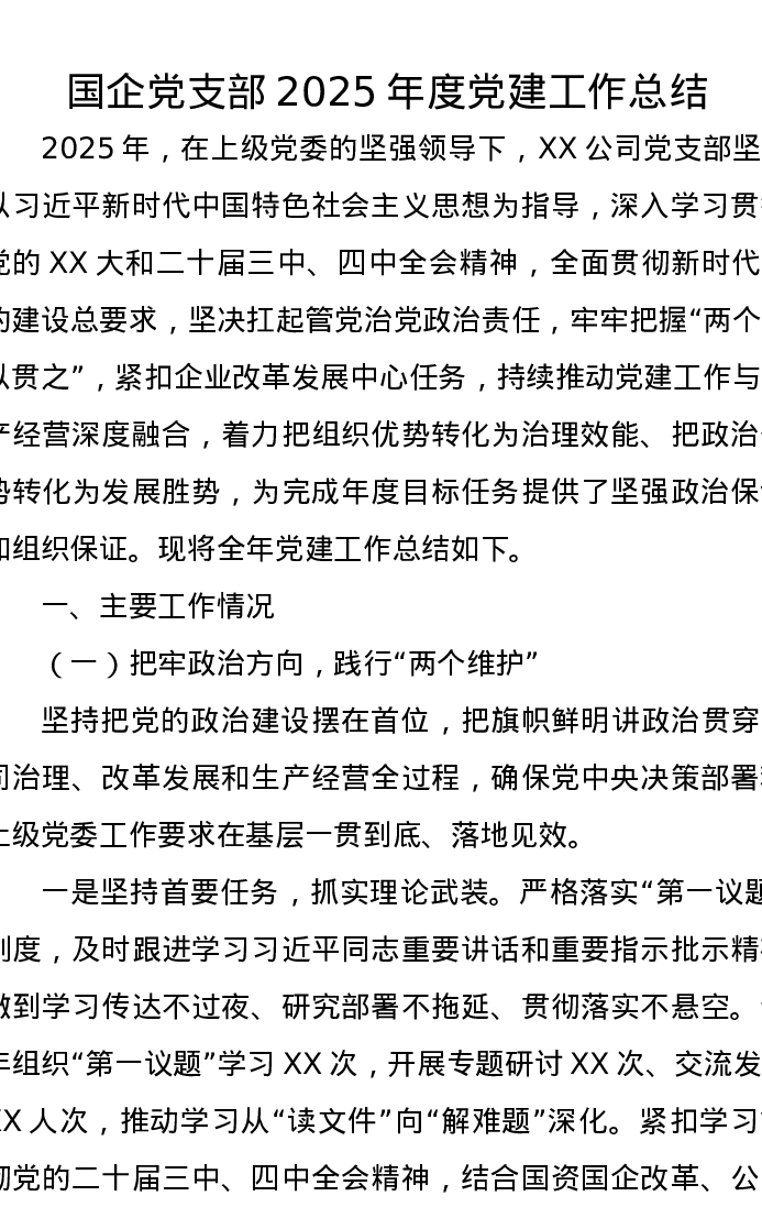 国企党支部2025年度党建工作总结