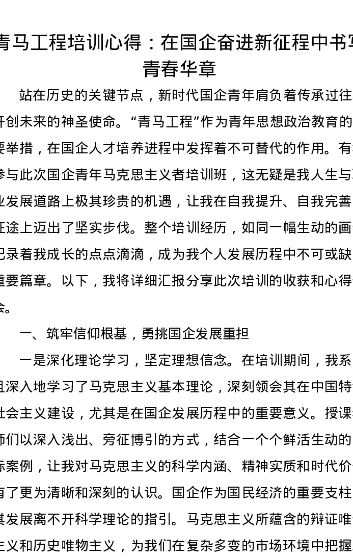 青马工程培训心得:在国企奋进新征程中书写青春华章