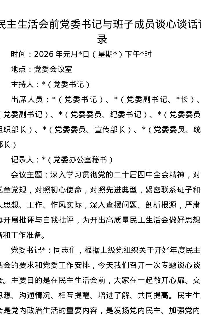 xxxxx前党委书记与班子成员谈心谈话记录(五个带头)