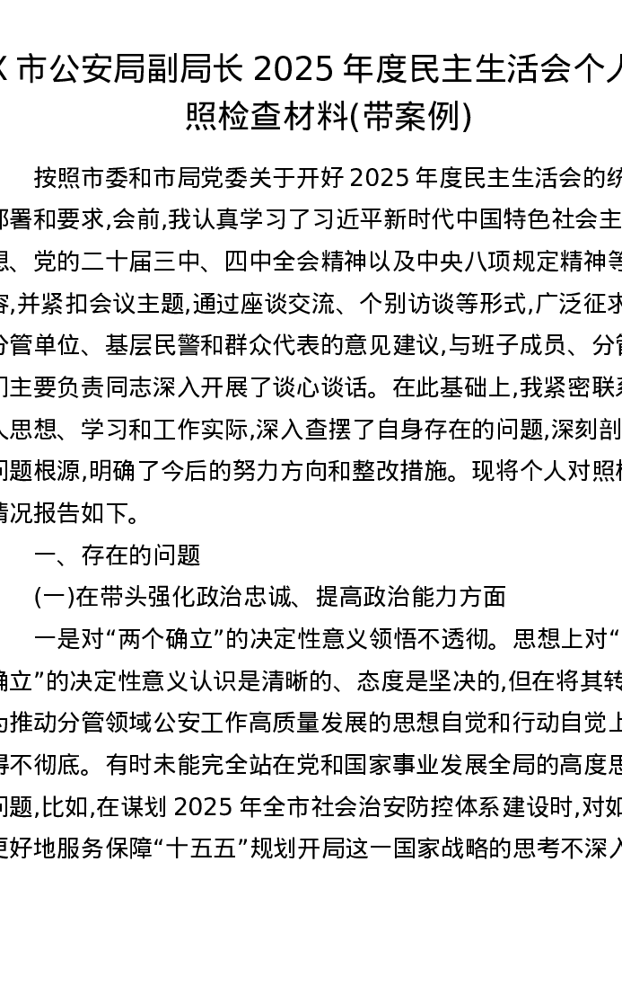 X市公安局副局长2025年度xxxxx个人对照检查材料(带案例)(五个带头)