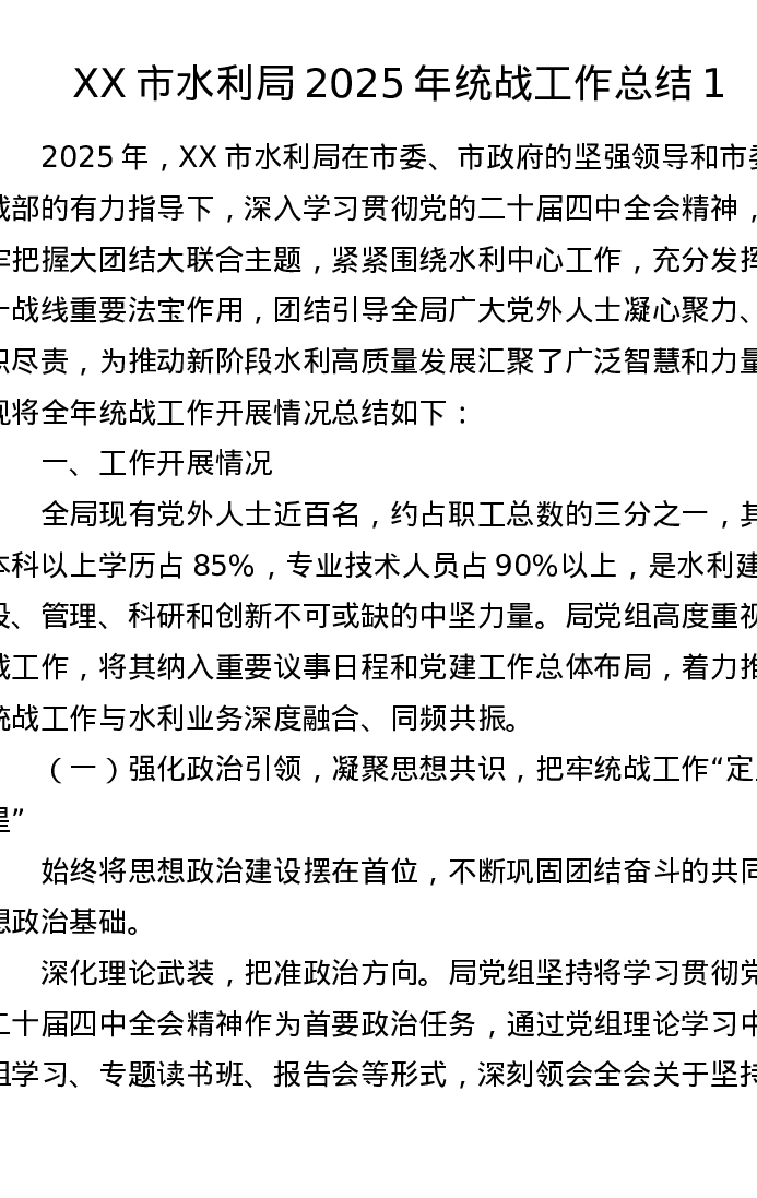 XX市水利局2025年统战工作总结1