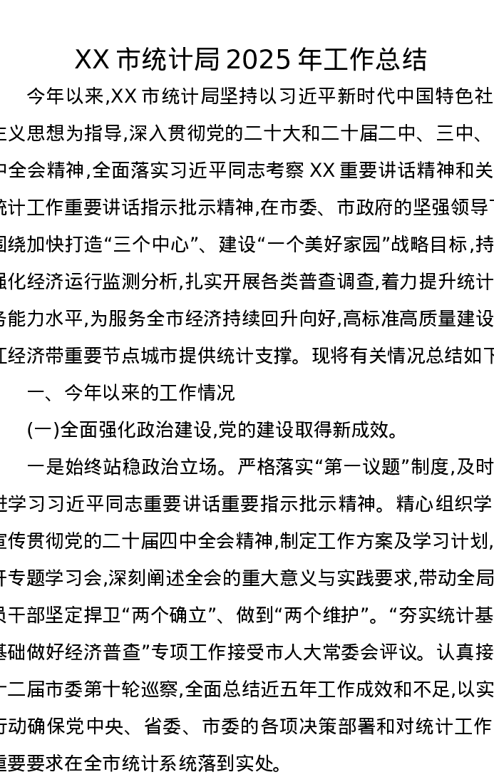 XX市统计局2025年工作总结