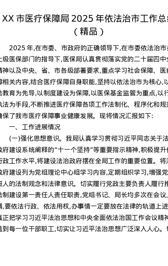 XX市医疗保障局2025年依法治市工作总结