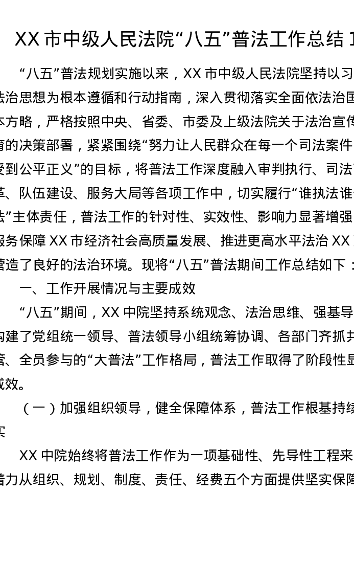 XX市中级人民法院八五普法工作总结1