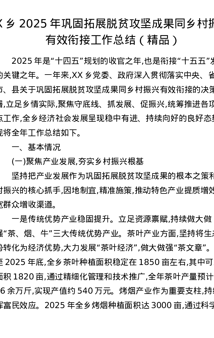 X乡2025年巩固拓展脱贫攻坚成果同乡村振兴有效衔接工作总结