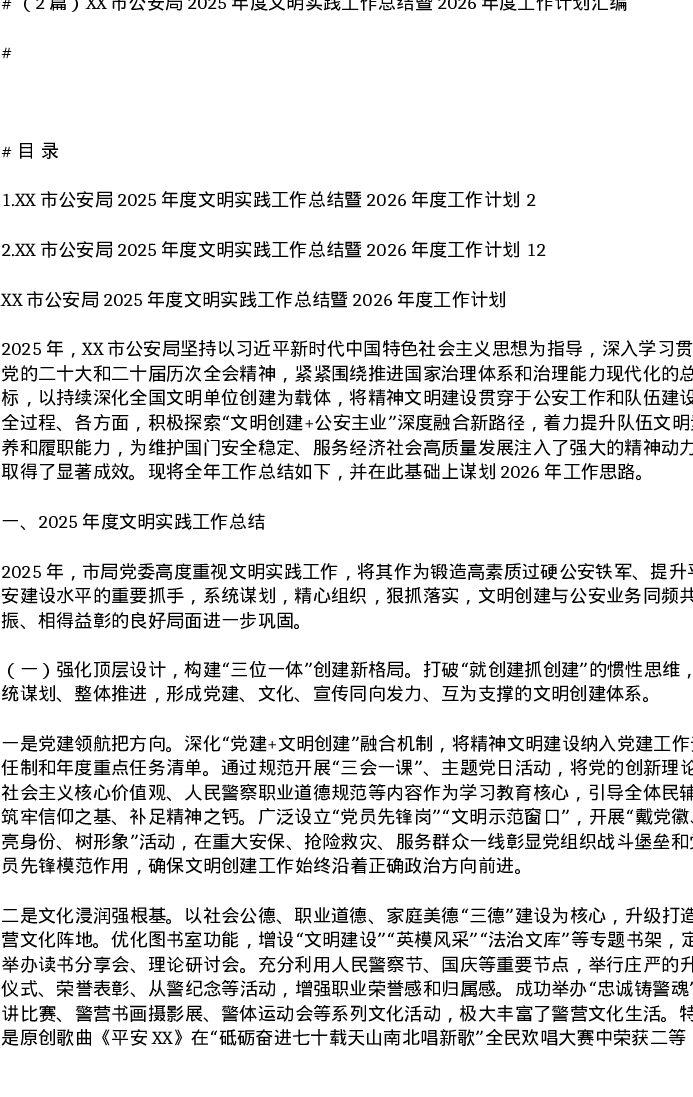 汇编:XX市公安局2025年度文明实践工作总结暨2026年度工作计划2篇