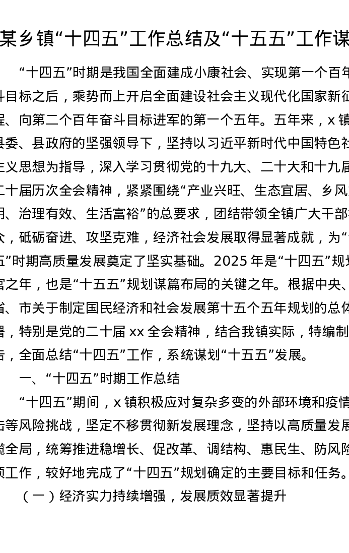某乡镇十四五工作总结及十五五工作谋划