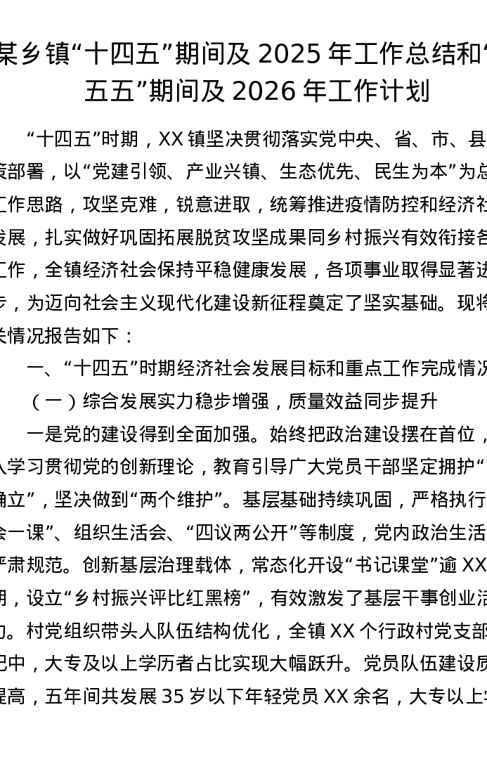 某乡镇十四五期间及2025年工作总结和十五五期间及2026年工作计划