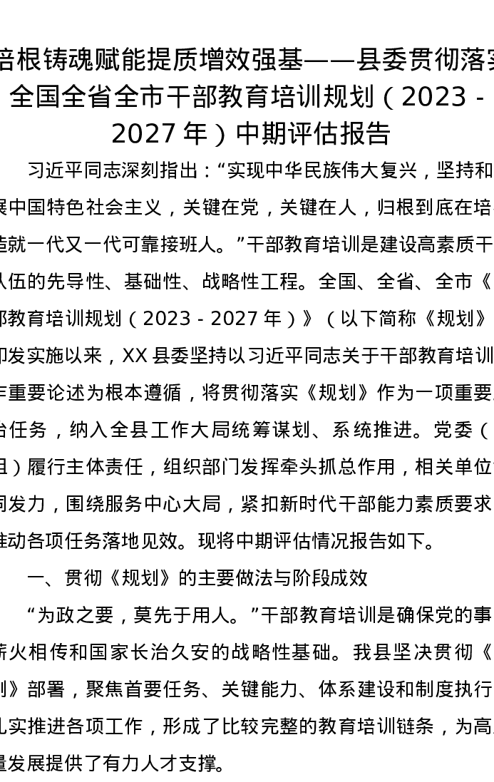 培根铸魂赋能提质增效强基——县委贯彻落实全国全省全市干部教育培训规划(2023-2027年)中期评估报告