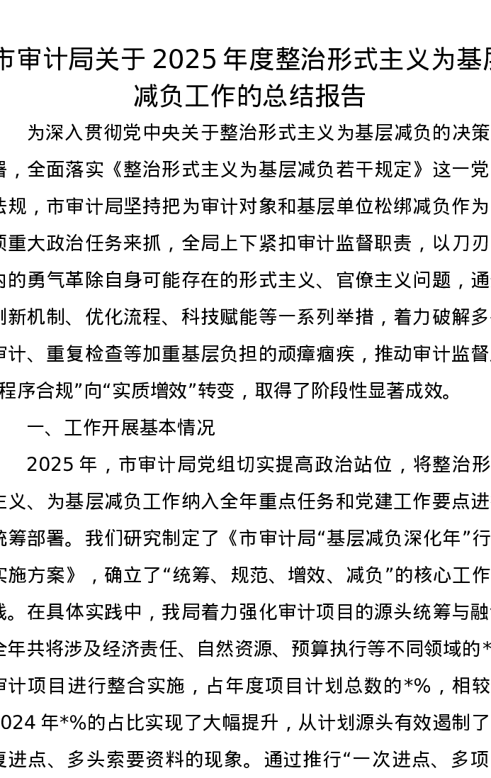 市审计局关于2025年度整治形式主义为基层减负工作的总结报告