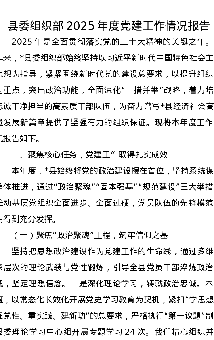 县委组织部2025年度党建工作情况报告