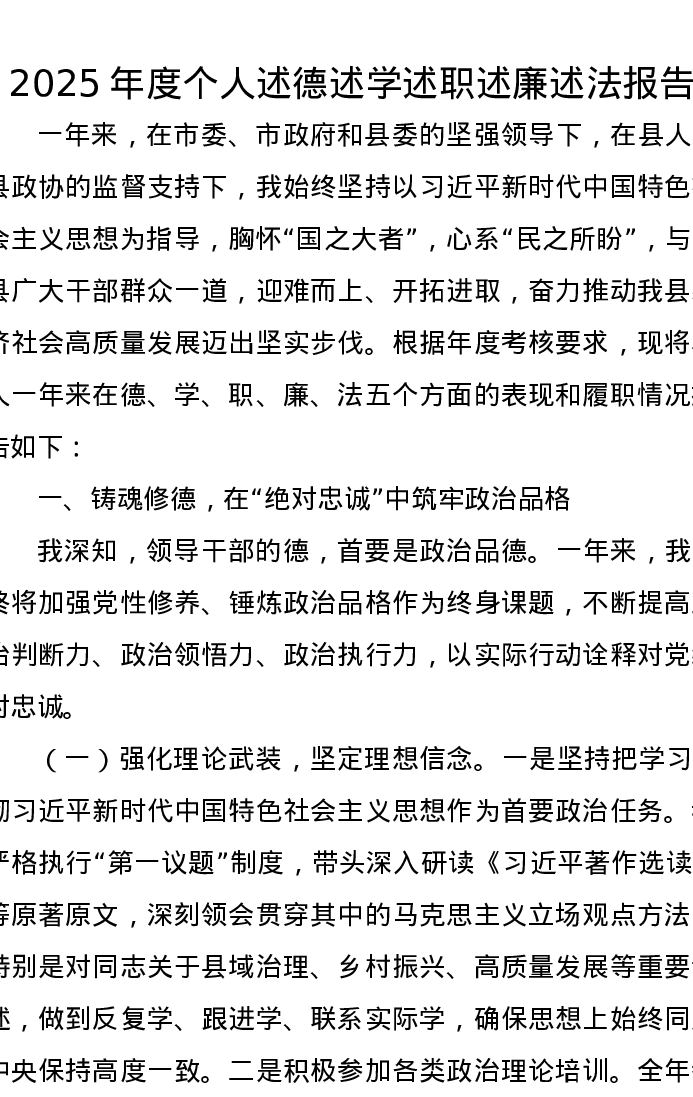 2025年度个人述德述学述职述廉述法报告