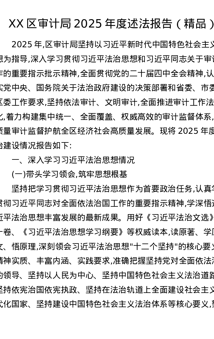 XX区审计局2025年度述法报告