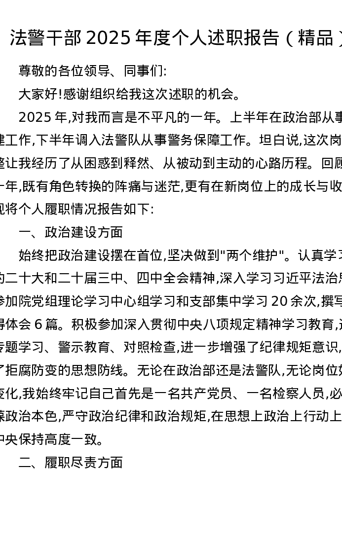 法警干部2025年度个人述职报告