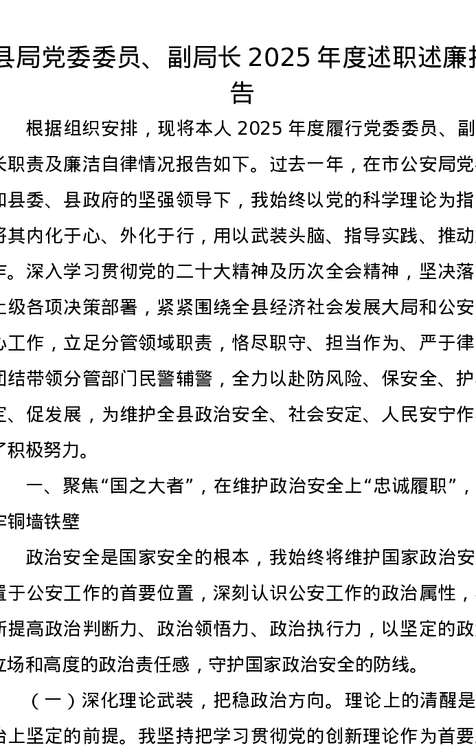 县局党委委员、副局长2025年度述职述廉报告