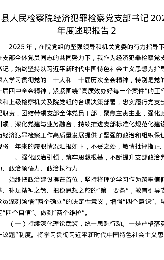 县人民检察院经济犯罪检察党支部书记2025年度述职报告2