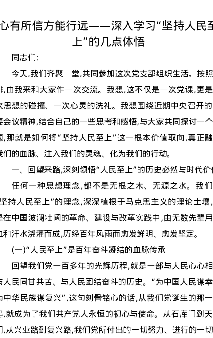 心有所信方能行远——深入学习坚持人民至上的几点体悟