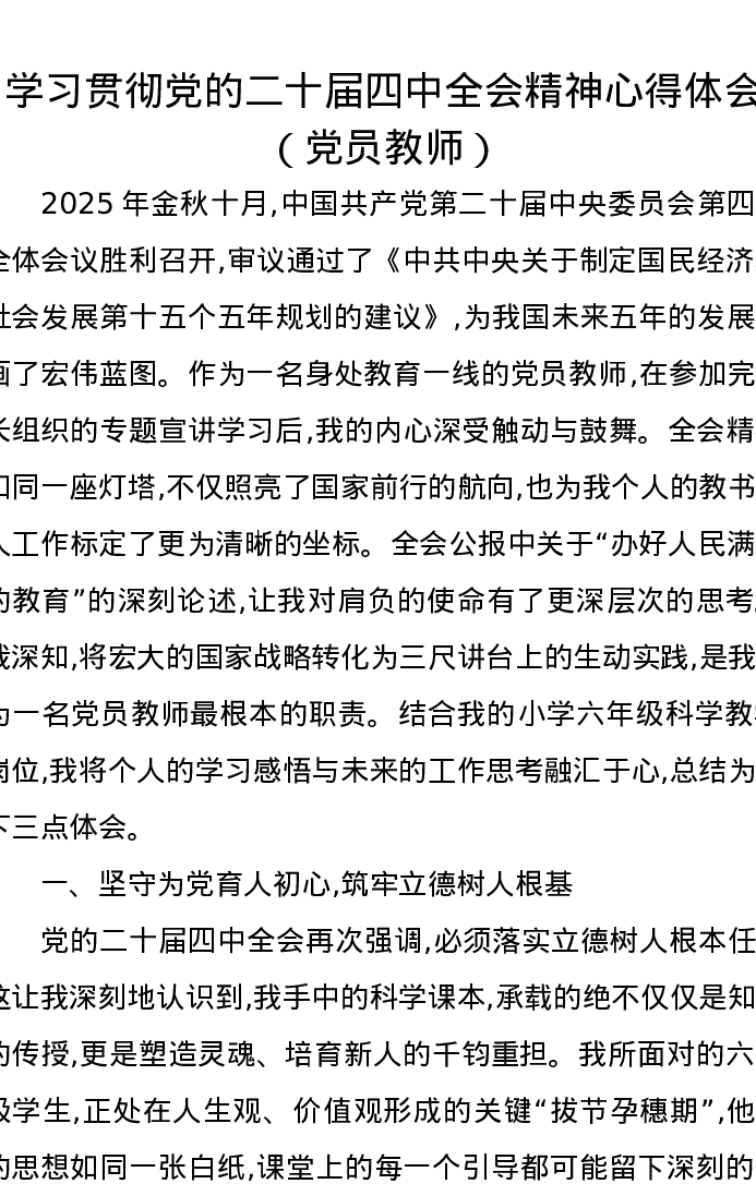 学习贯彻党的二十届四中全会精神心得体会(党员教师)