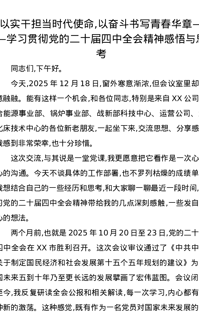 以实干担当时代使命,以奋斗书写青春华章——学习贯彻党的二十届四中全会精神感悟与思考