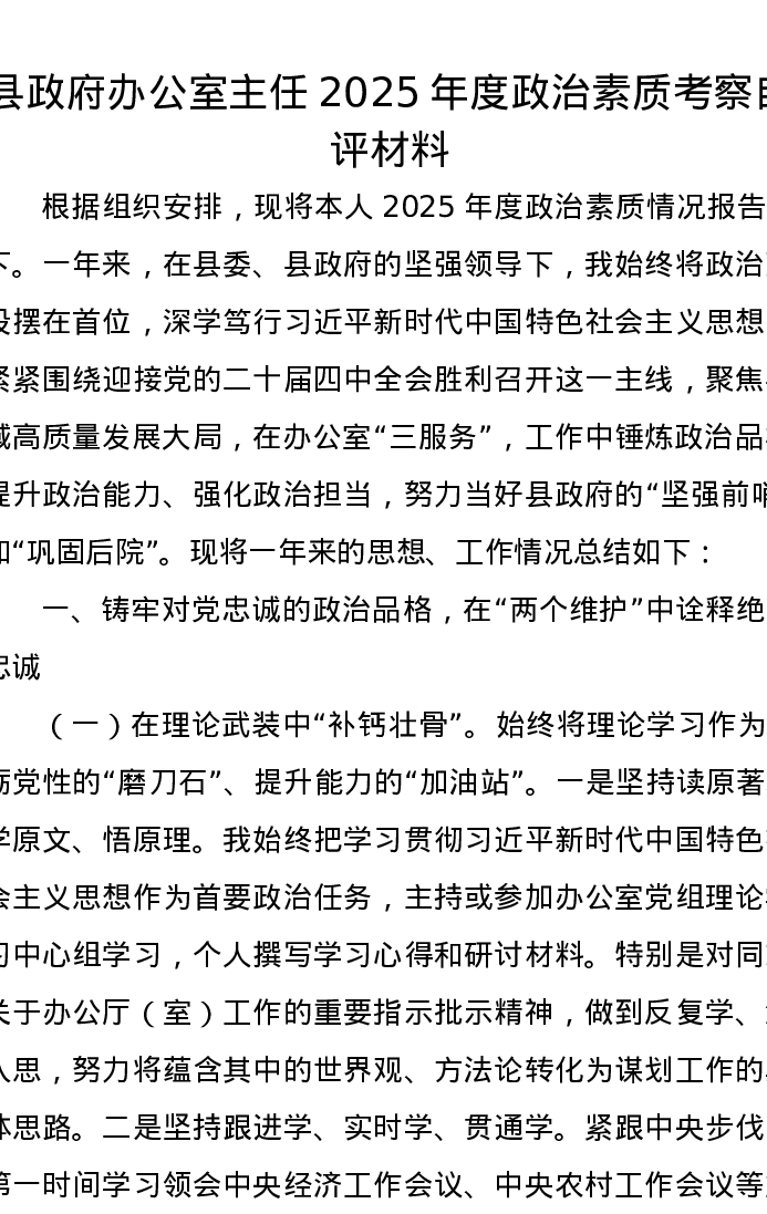 县政府办公室主任2025年度政治素质考察自评材料