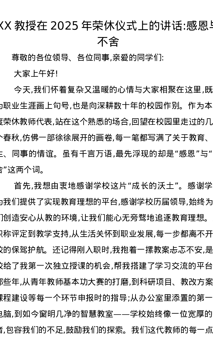 XX教授在2025年荣休仪式上的讲话:感恩与不舍