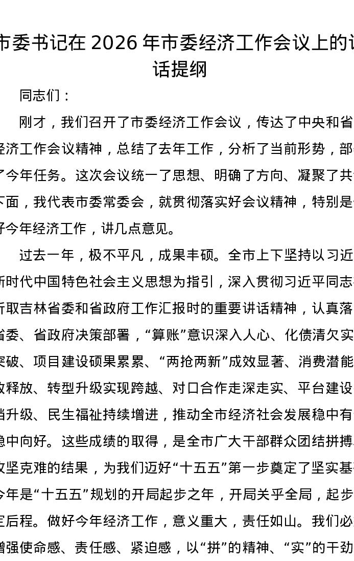 市委书记在2026年市委经济工作会议上的讲话提纲