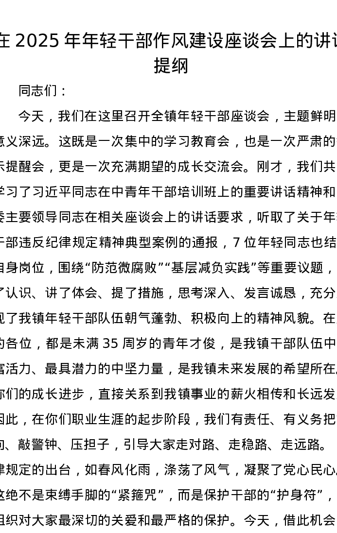 在2025年年轻干部作风建设座谈会上的讲话提纲