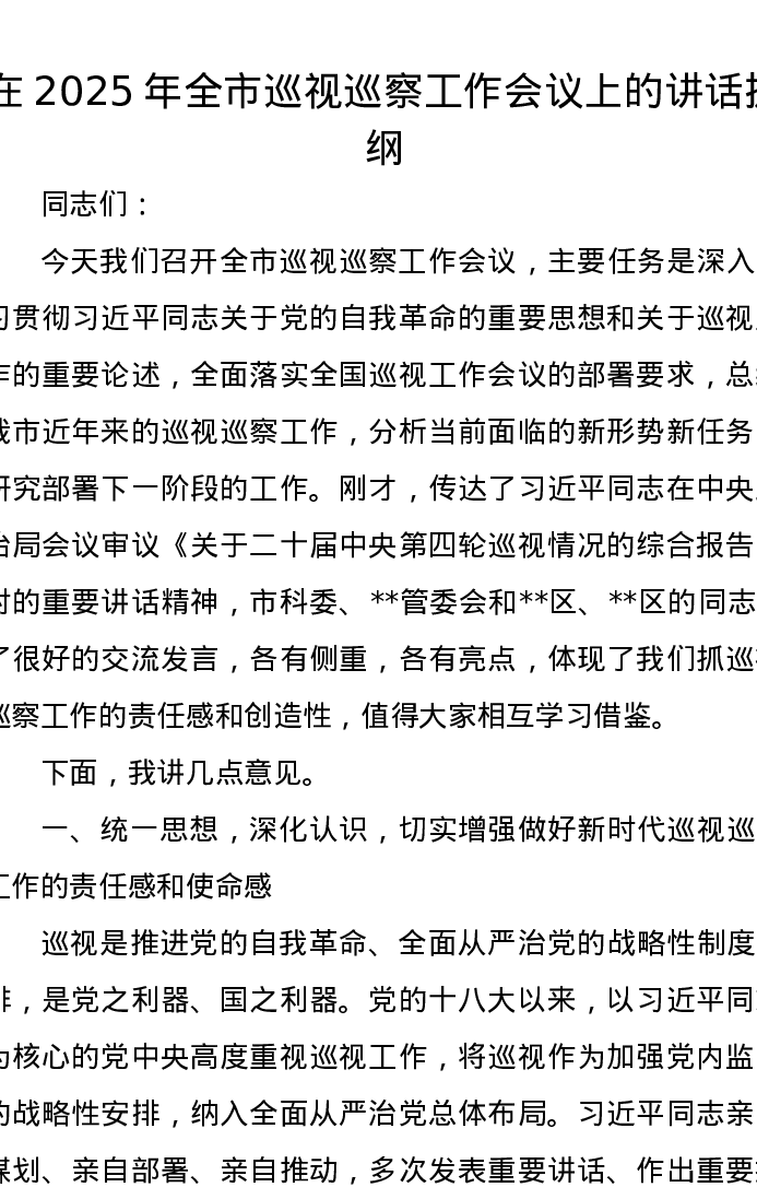 在2025年全市巡视巡察工作会议上的讲话提纲