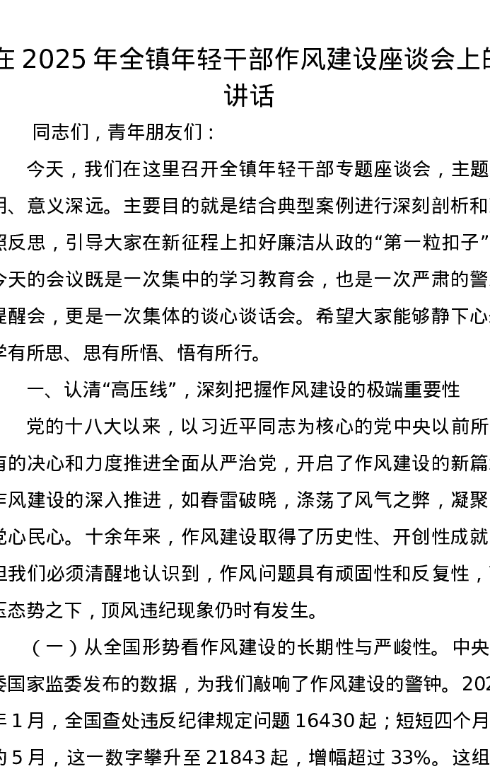 在2025年全镇年轻干部作风建设座谈会上的讲话
