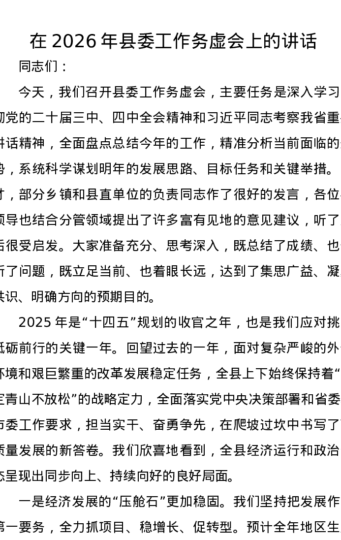 在2026年县委工作务虚会上的讲话