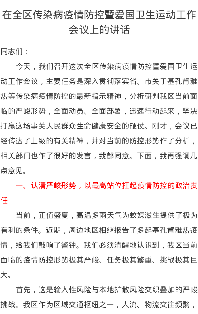 在全区传染病疫情防控暨爱国卫生运动工作会议上的讲话