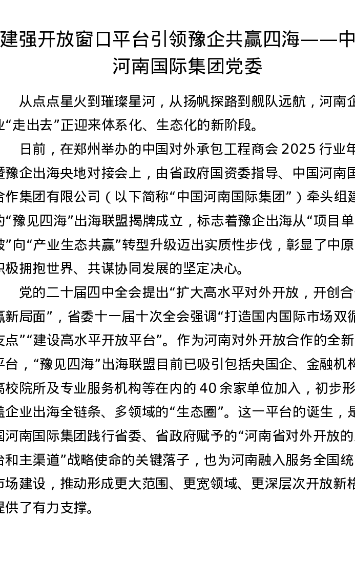 建强开放窗口平台 引领豫企共赢四海——中国河南国际集团党委