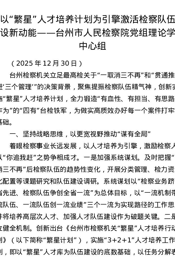 以繁星人才培养计划为引擎 激活检察队伍建设新动能——台州市人民检察院党组理论学习中心组