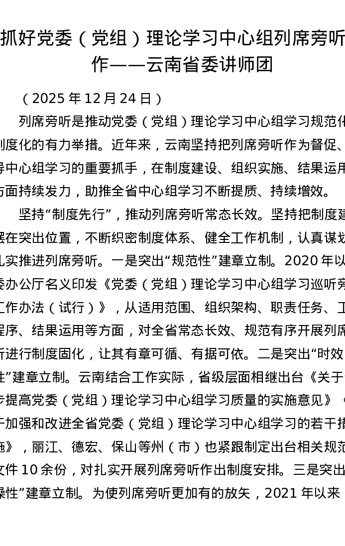 抓好党委(党组)理论学习中心组列席旁听工作——云南省委讲师团