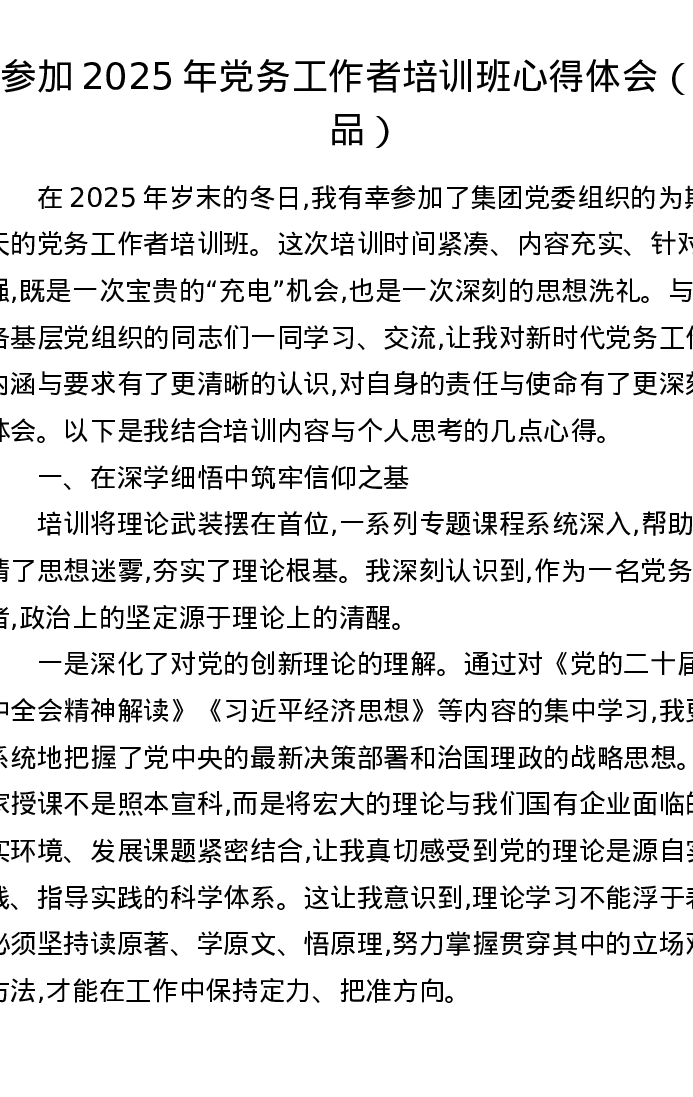 参加2025年党务工作者培训班心得体会