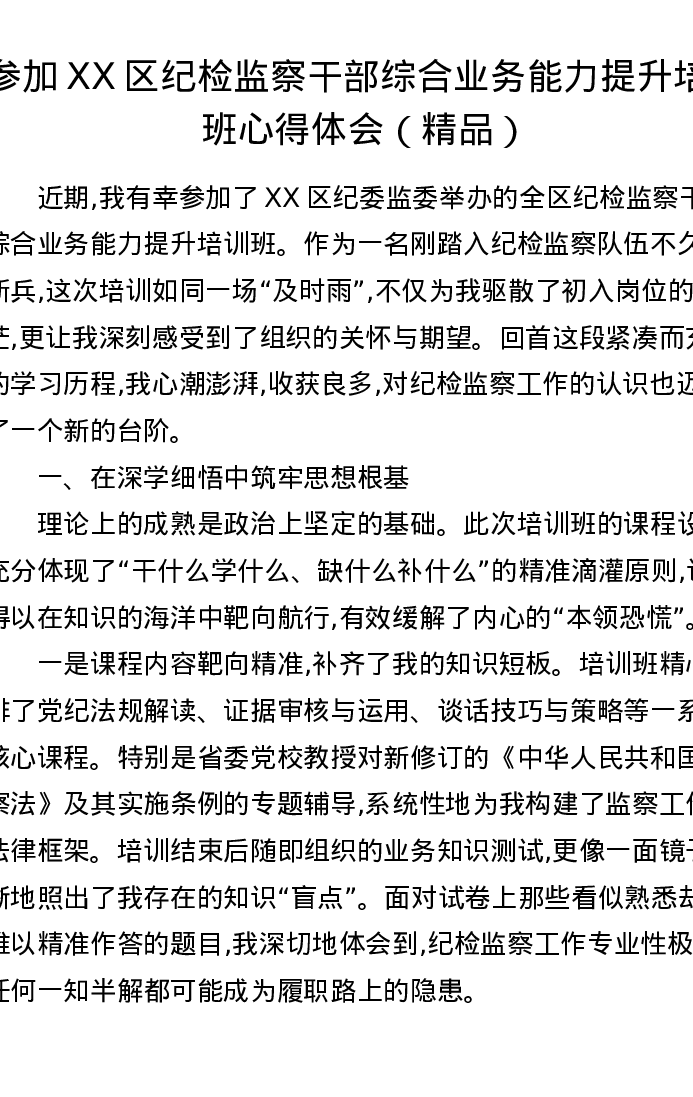 参加XX区纪检监察干部综合业务能力提升培训班心得体会