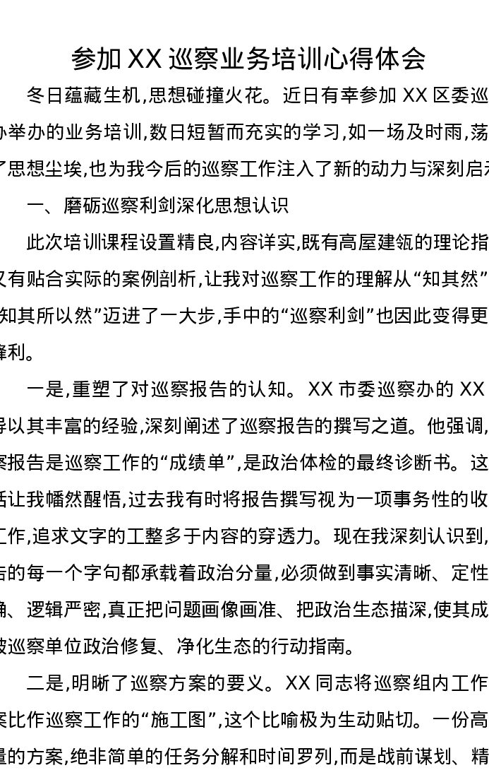 参加XX巡察业务培训心得体会