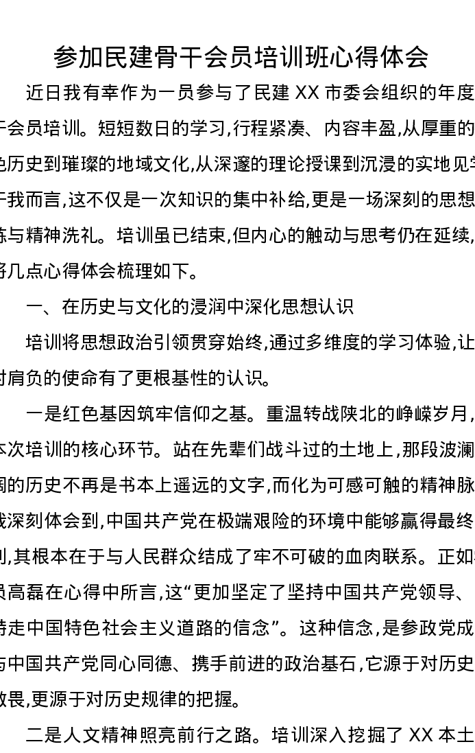 参加民建骨干会员培训班心得体会