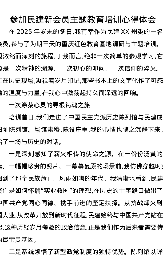 参加民建新会员主题教育培训心得体会