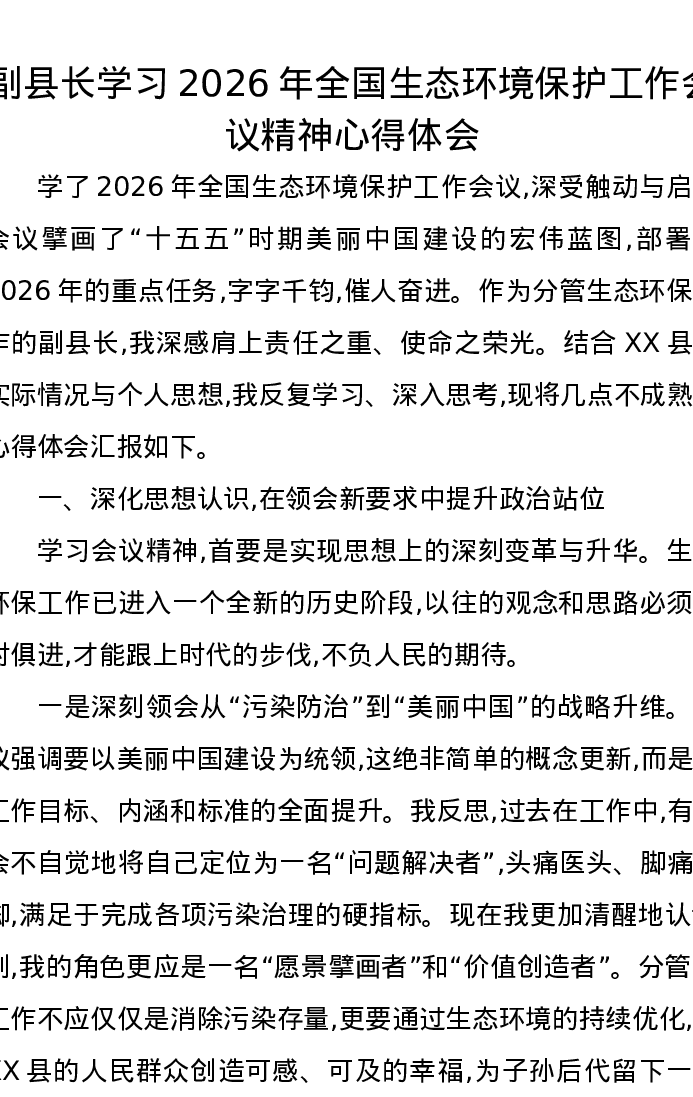 副县长学习2026年全国生态环境保护工作会议精神心得体会