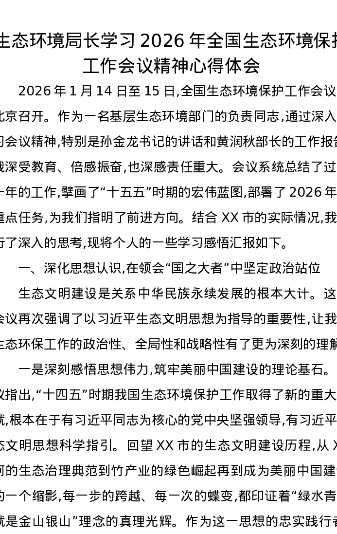 生态环境局长学习2026年全国生态环境保护工作会议精神心得体会