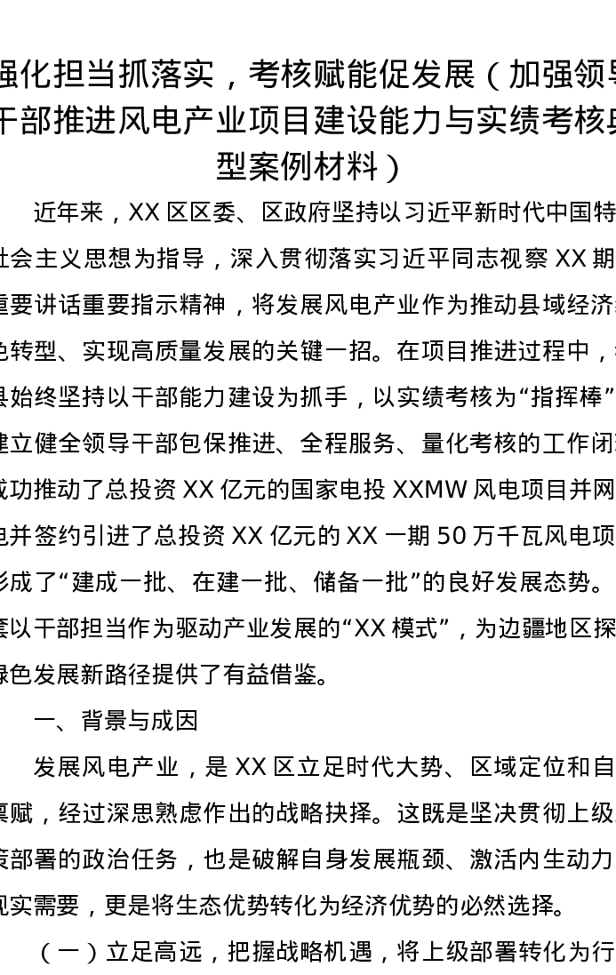 强化担当抓落实,考核赋能促发展(加强领导干部推进风电产业项目建设能力与实绩考核典型案例材料)