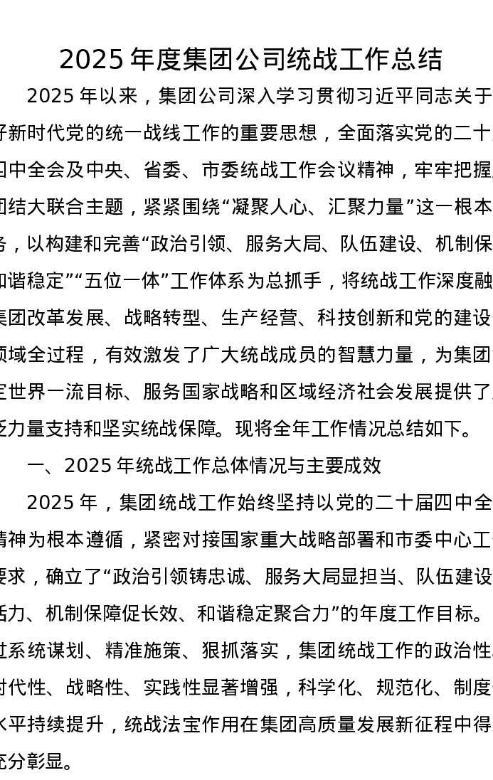 2025年度集团公司统战工作总结