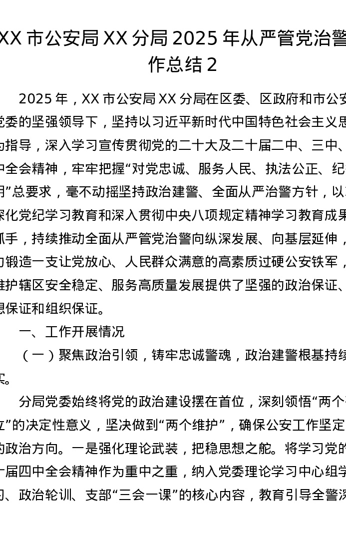 XX市公安局XX分局2025年从严管党治警工作总结2