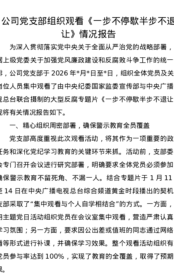 公司党支部组织观看《一步不停歇半步不退让》情况报告