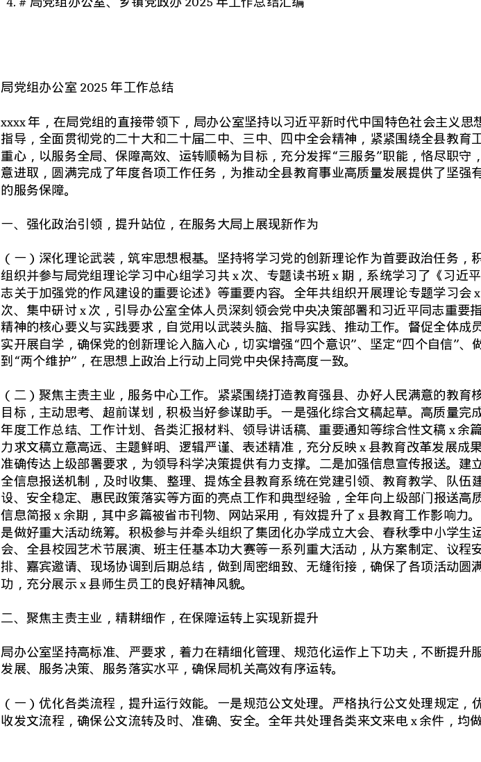 汇编:局党组办公室、乡镇党政办2025年工作总结4篇